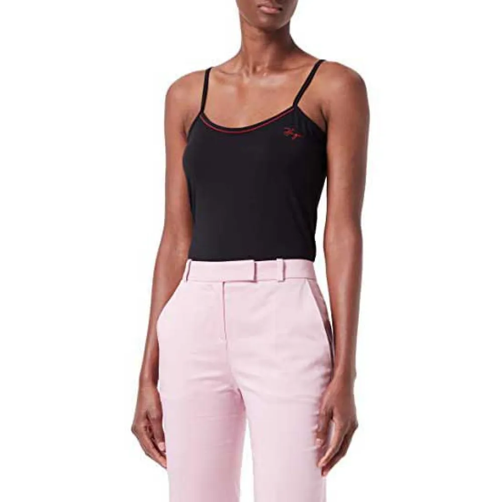 Red Contrast Stripe On Hems And Adjustable Straps.